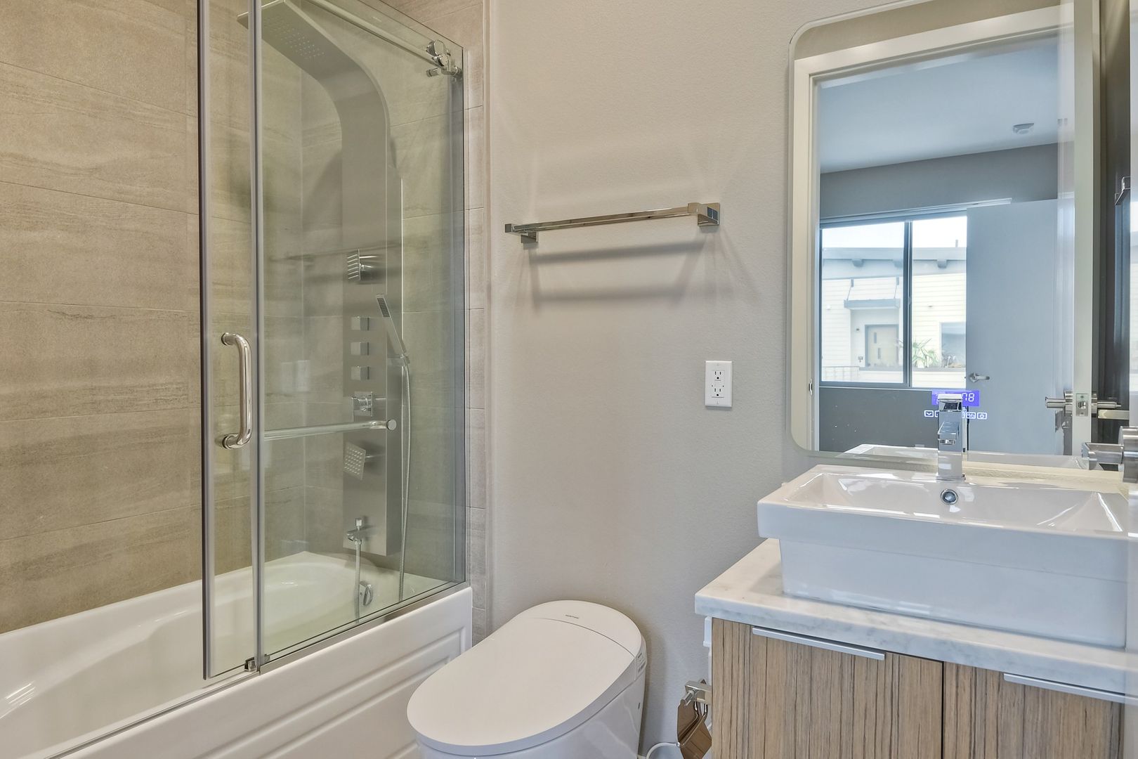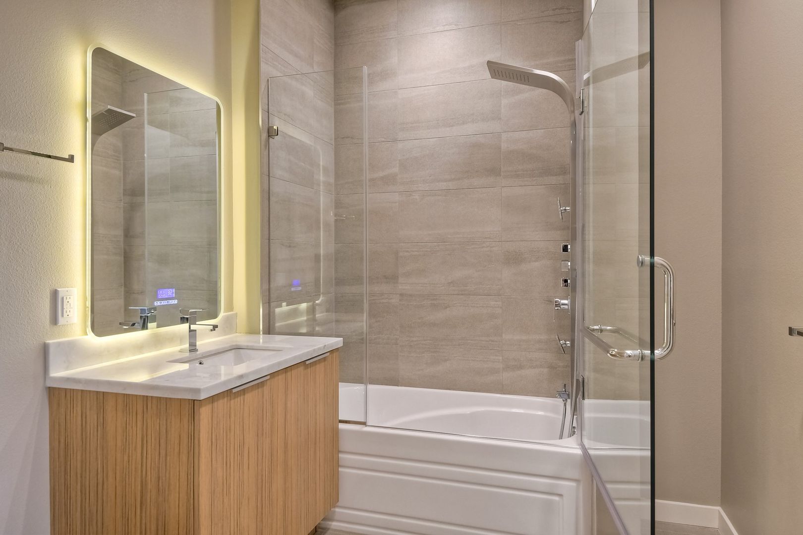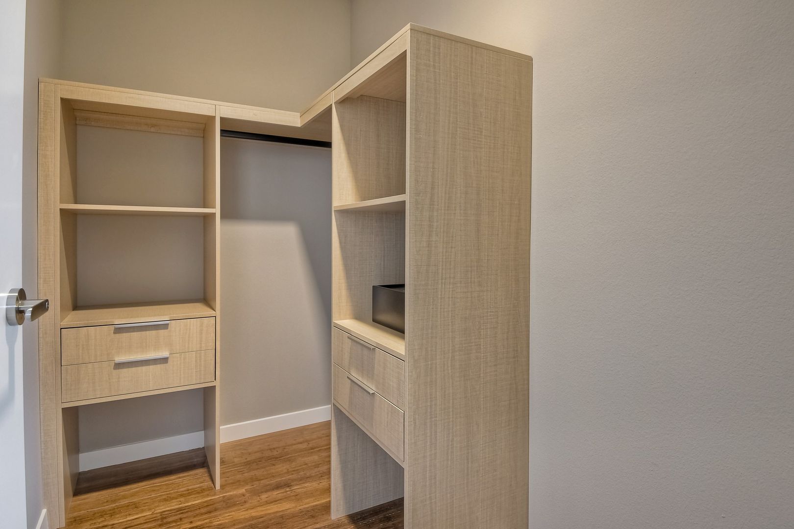 This two bedroom (plan I) was thoroughly designed with efficient features, contemporary interiors, high-end finishes, and unprecedented attention to detail. This is our largest and premium 2bed unit type featuring a large master bedroom and 2 walk in closets. Features range from Kitchen Aid stainless steel appliances, Multi-head shower systems, Smart Front door locks, Smart Toilets, Digital Smart Bluetooth bathroom mirrors, to a fully integrated ButterflyMX smart intercom system and much more. Designed to embrace natural light and maximize livability, State & Oaks floor plans are a fit for your lifestyle!